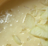 Käytä tähän jotain hyvää kuivaa valkoviiniä, ja se voi mielellään olla sitä samaa jota aiot tarjoilla ruoan kera. Ruoka ei koskaan ole sen parempaa kuin sen raaka-aineet, ja kehnoa viiniä käyttämällä ruoastakaan ei tule häävi. Ei ole huolta käyttää viiniä vaikka tarjoilee ruokaa lapsillekin, tässä tapauksessa viinin alkoholi kiehuu pois liemen kokoon keittämisen aikana. Sipuli jää liemen sekaan jotta se nataa oman makunsa kastikkeelle, mutta jotta se myös itse maustuu sahramilla ja viinillä ja se tarjoillaan ruusukkeiden lisukkeena. Voit lukea reseptistäni paistettua tofua ja hillottuja kehäkukan terälehtiä miten voit itse ensi kesänä ottaa talteen ja hillota kehäkukan terälehtiä ruoan raaka-aineeksi.